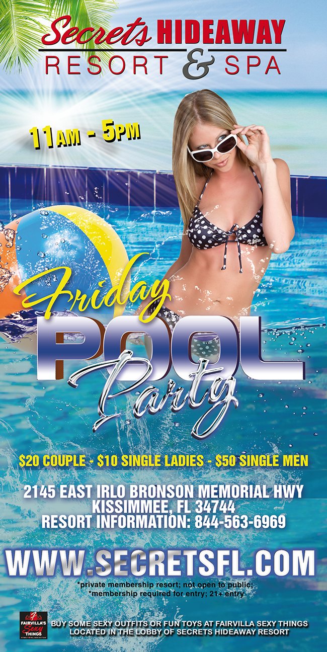 All the parties are located at Secrets Hideaway Resort & Spa®. For reservations: Visit our reservations page Click here for Reservations , call 844-563-6969 or book by clicking the Red "Book a Room" button at the top of each event page.