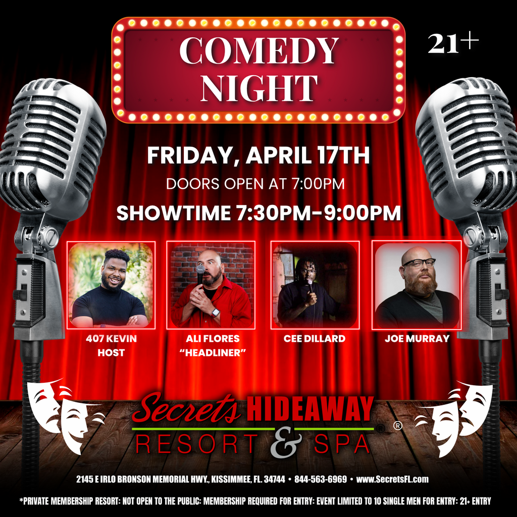 Get ready to laugh all night long at our Comedy Show hosted by the one and only 407Kevin – Kevin Deane! Join Kevin and his uproarious lineup of top comedians for a night filled with side-splitting humor and nonstop entertainment. Doors open at 7pm, and the show kicks off promptly at 7:30pm—so grab your seats early and prepare for a comedy experience you won’t forget!