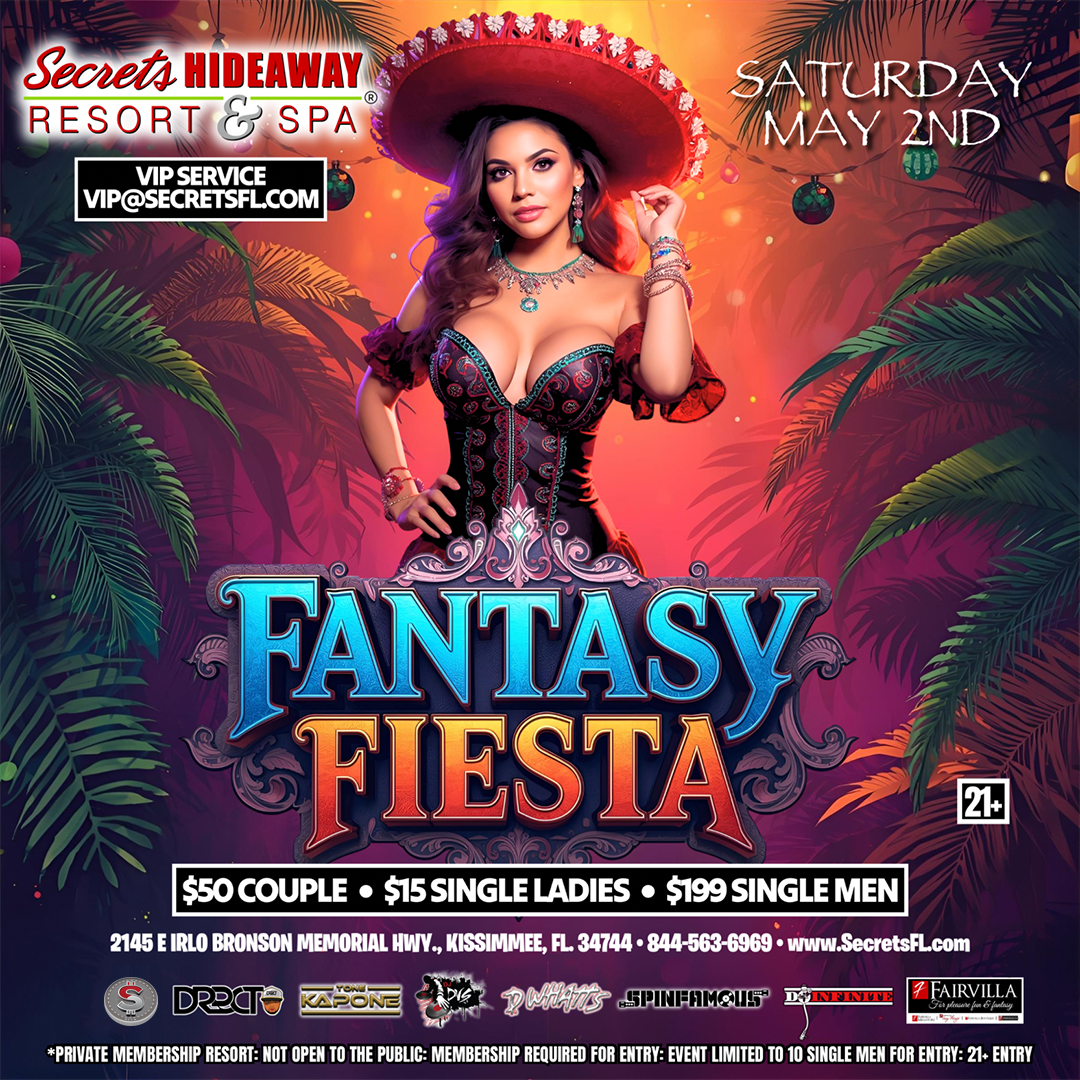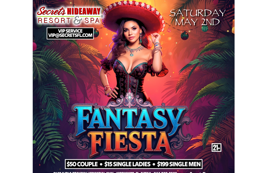 Secrets Hideaway presents “Fantasy Fiesta” on Saturday, May 2nd! Heat up the night and unleash your boldest fantasies as Secrets transforms into a sizzling celebration inspired by vibrant Mexican flair. Slip into your sexiest fiesta-themed outfit—think spicy colors, seductive skirts, sombreros with a twist, embroidered lingerie, or anything that brings out your caliente side. Tonight is all about passion, color, and playful temptation as the party erupts with festive energy and irresistible charm.