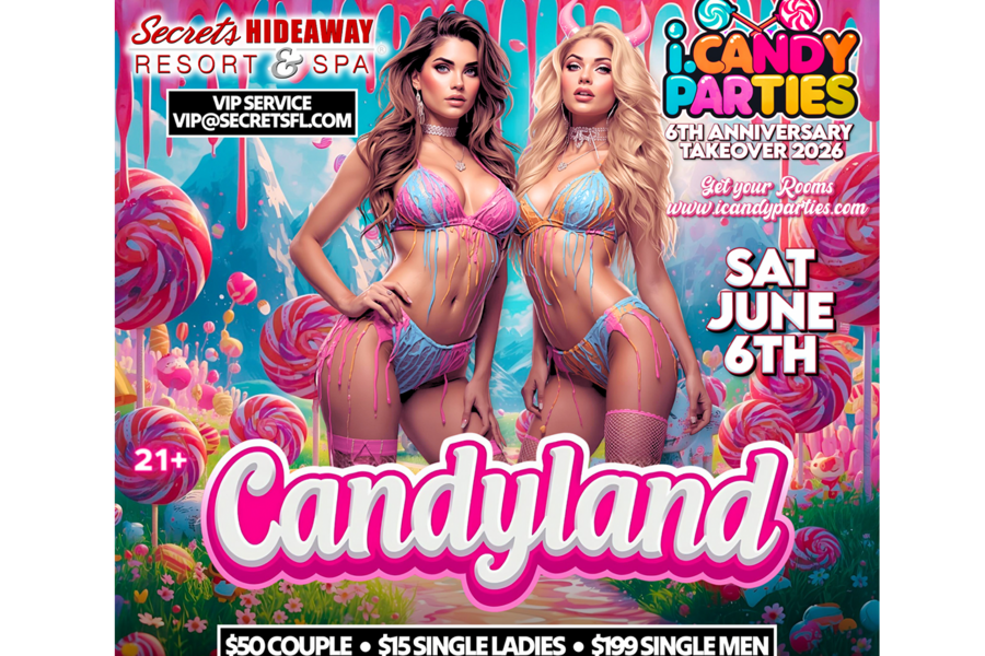 i.Candy Lifestyles Takeover presents “Candyland” on Saturday, June 6th at Secrets Hideaway Resort & Spa! Step into a sweet and sensual fantasy world where vibrant colors, playful costumes, and mouthwatering temptation fill every corner of the night. Think candy-striped lingerie, sugary accessories, lollipop props, and deliciously seductive outfits inspired by your favorite treats. Whether you arrive as a flirty candy queen, a mischievous sugar daddy, or a sexy swirl of color, this is your chance to unleash your sweetest side in the most tantalizing way possible.