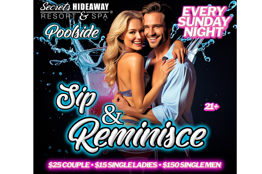Extend the weekend bliss and dive into an evening of sheer indulgence at Sip & Reminisce Poolside, held every Sunday night at Secrets Hideaway. Gather your friends and let the fun continue as you embrace the laid-back ambiance of our clothing-optional oasis. Whether you prefer to dress to the nines or keep it casual, the choice is entirely yours at this liberating event. Picture yourself poolside, surrounded by the hottest beats, the iciest drinks, and the sexiest company. Sip & Reminisce offers more than just a relaxing evening by the pool; it's an invitation to free your inhibitions and explore your deepest desires in the company of like-minded friends.