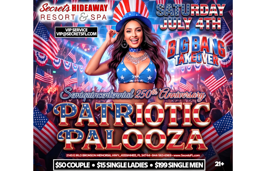 Big Bang™ Independence Weekend Takeover at Secrets Hideaway proudly presents “Patriotic Palooza” on Saturday, July 4th — the ultimate red, white, and blue celebration! Join us as we honor America’s Semiquincentennial and celebrate the nation’s historic 250th Anniversary in true Big Bang™ style. This is not just a party… it’s a full-throttle freedom fest packed with high-energy beats, sizzling summer vibes, and a sea of sexy patriotic fashion lighting up the resort.