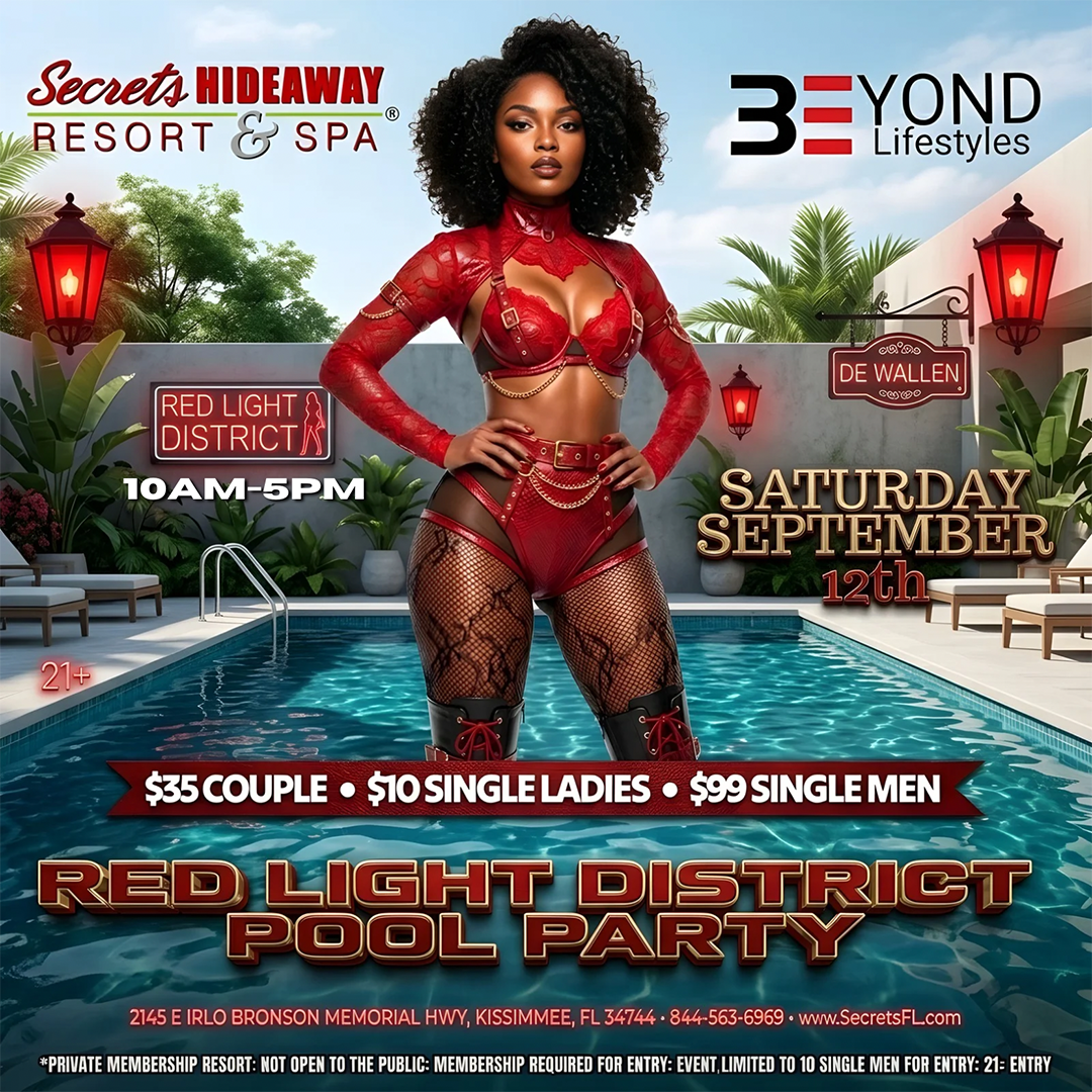 Beyond Lifestyles Takeover turns the daytime temptation all the way up on Saturday, September 12th as Secrets Hideaway Resort & Spa presents the Red Light District Pool Party from 10am–5pm. Get ready for a sizzling afternoon where bold energy, sexy style, and nonstop fun take over the poolside scene. Inspired by neon nights and irresistible allure, this daytime bash is all about confidence, excitement, and living out your hottest summer vibes under the Florida sun.