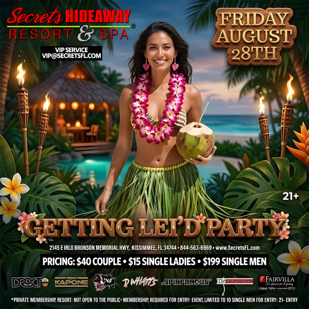 All the parties are located at Secrets Hideaway Resort & Spa®. For reservations: Visit our reservations page Click here for Reservations , call 844-563-6969 or book by clicking the Red "Book a Room" button at the top of each event page.